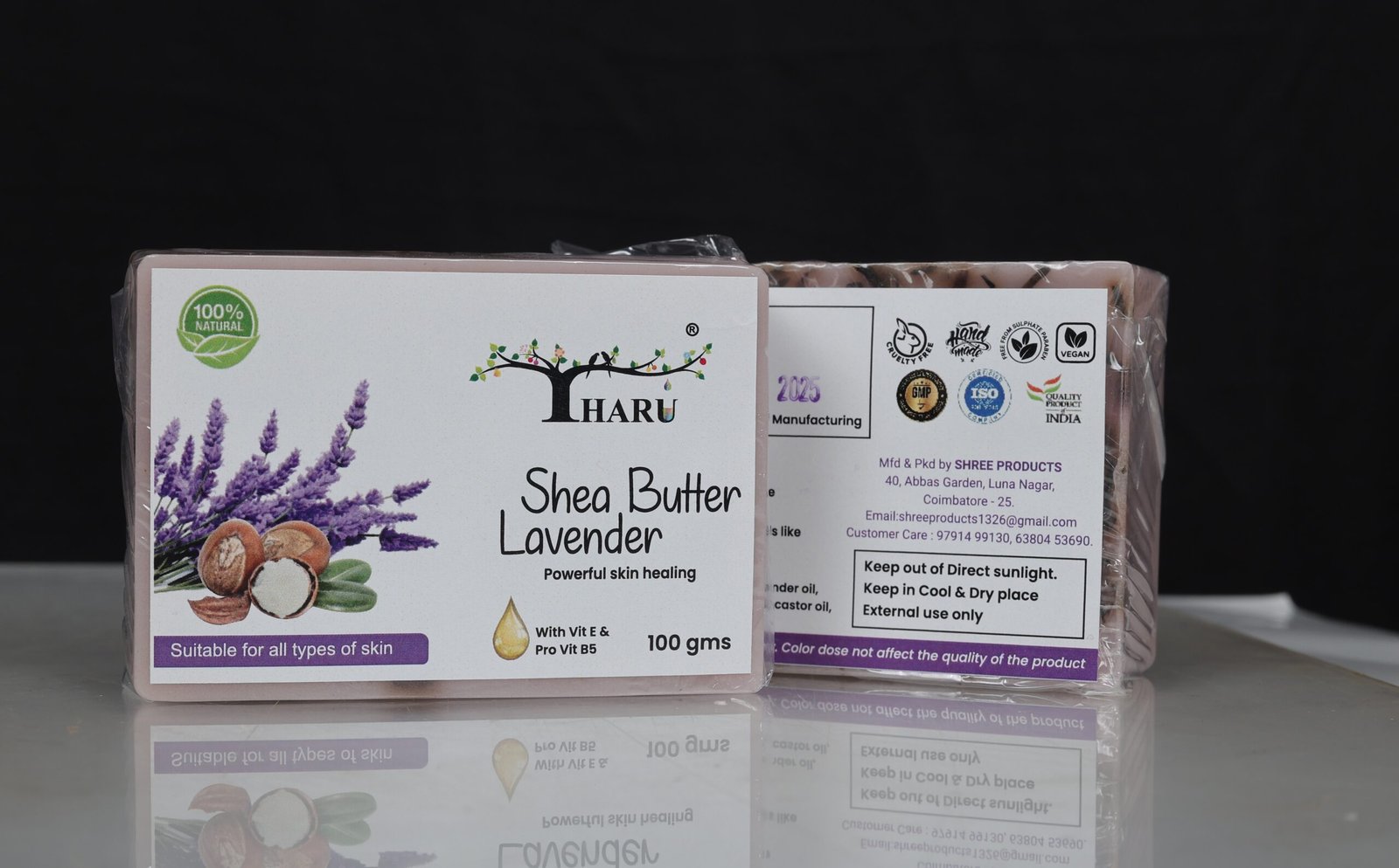 Tharu Shea Butter and Lavender Soap deeply nourishes and hydrates the skin while calming the senses with soothing lavender. Rich in vitamins and antioxidants, it helps soften dry skin, reduce irritation, and promote a healthy glow. Free from SLS, SLES, parabens, and harsh chemicals — gentle enough for daily use.